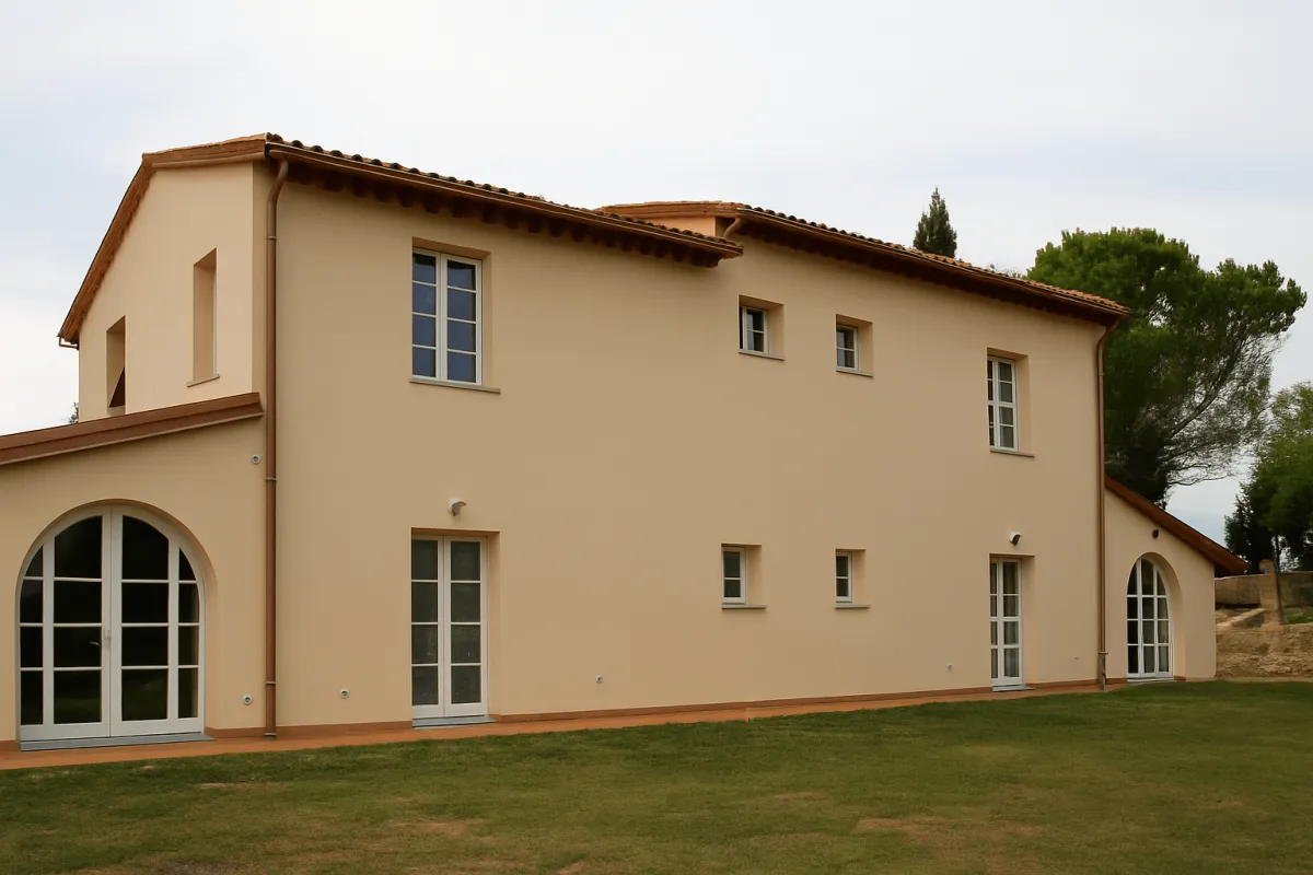 Il design evoca la classica architettura rurale o collinare Toscana, con i suoi colori caldi e il tetto in coppi. La struttura in legno permette di coniugare il fascino delle linee tradizionali con l'efficienza energetica che una casa in legno ti può garantire.