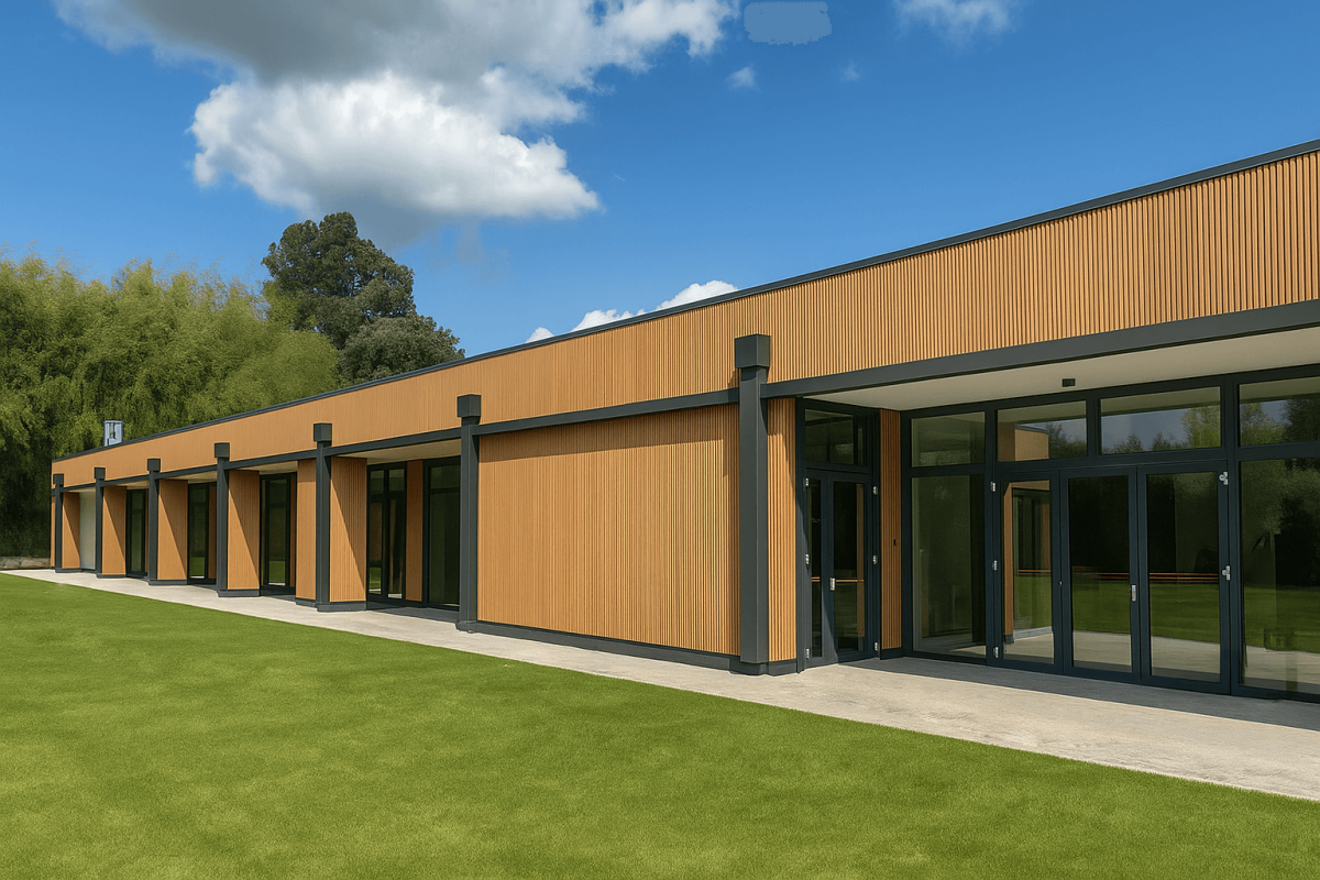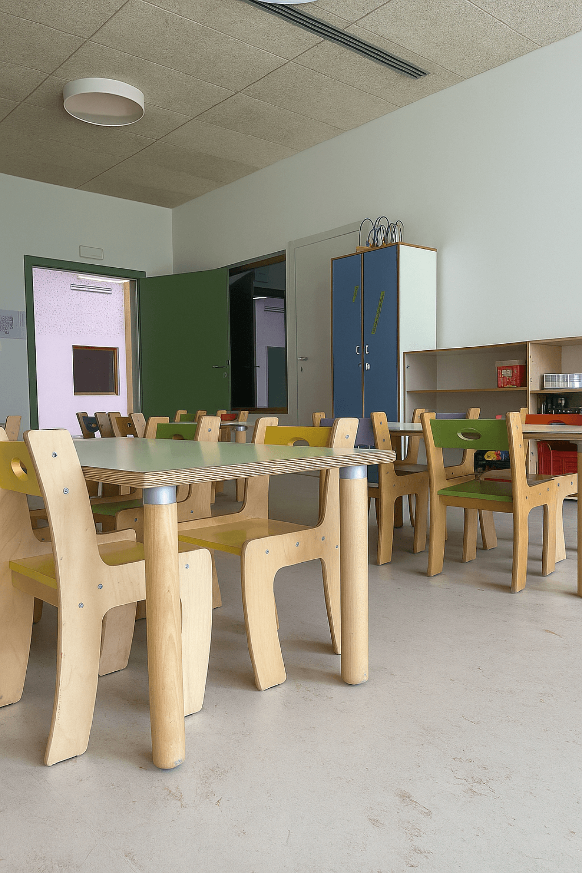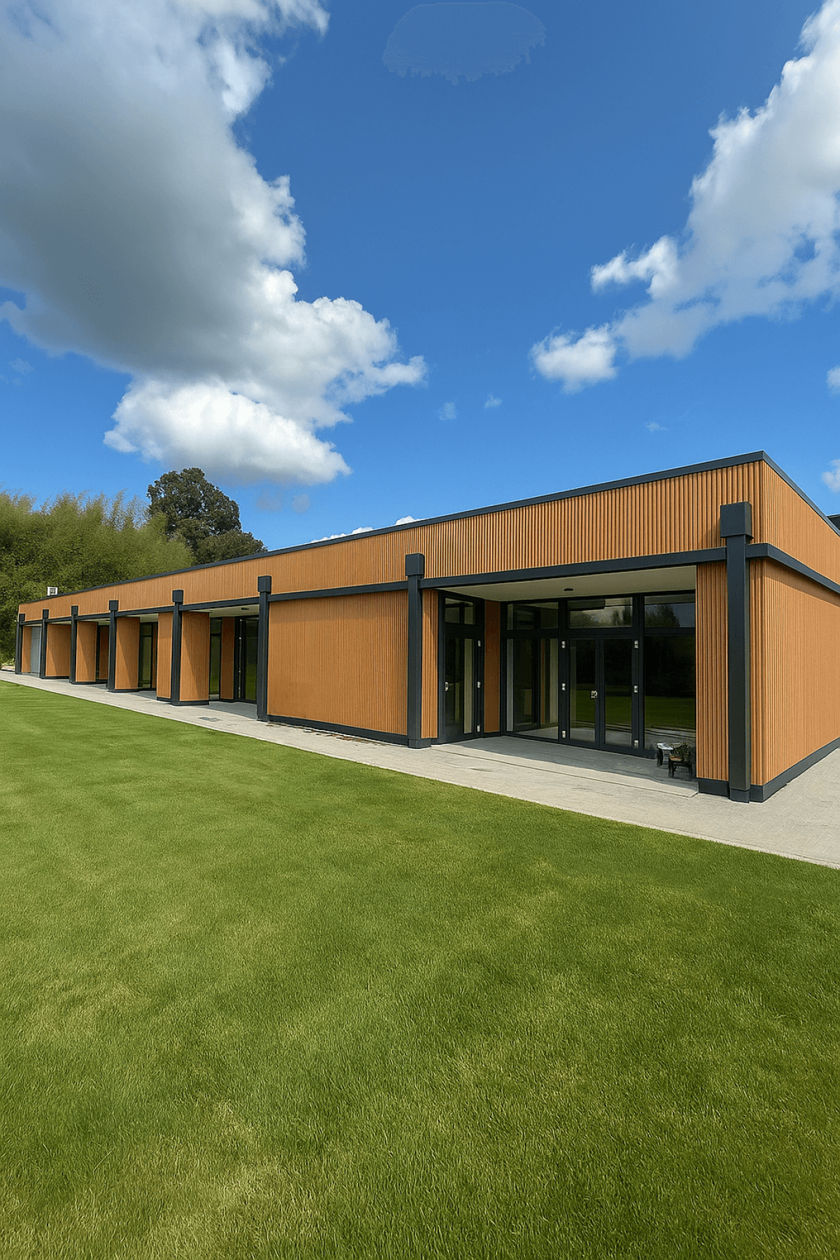 Un edificio che si sviluppa in lunghezza e su un piano, facilitando l’accesso e la sicurezza, mentre gli spazi verdi circostanti diventano parte integrante dell’esperienza scolastica.
